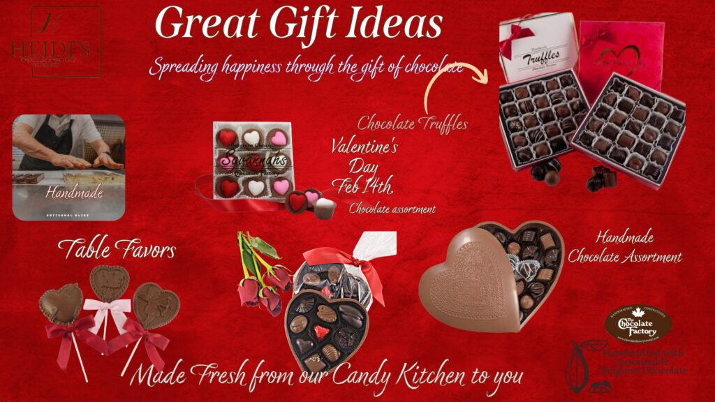 All of out Gift Baskets are made to order and come filled with a selection of our handcrafted Chocolates and Confections. We can even make a “chocolate basket” and fill it with an assortment of our Truffles and Chocolates.